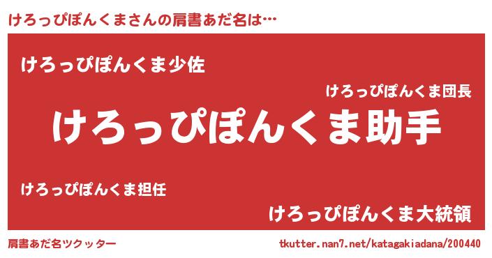 | 胡散臭い通販商品みたいなあだ名 | 『100人中100人が認めたイリジウム磁石…その名も「けろっぴぽんくま」』 |