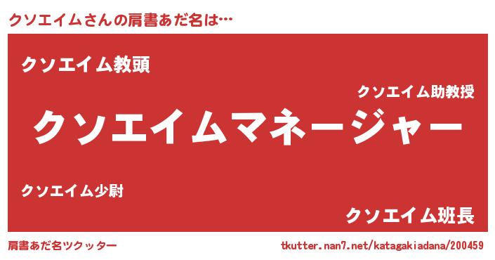 | 欧米人風あだ名 | 『アンジェラ・クソエイム』 |