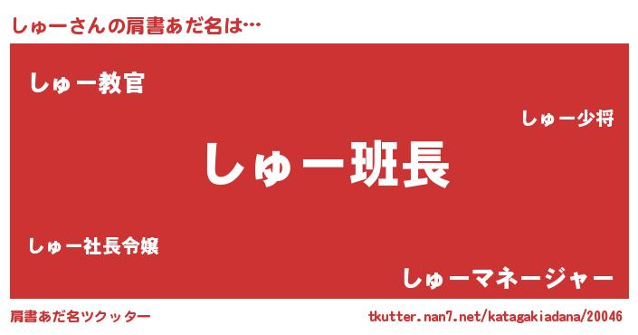 | ポケモン風あだ名 | 『ヒシュー』『シーュイ』『シュゴンZ』 |