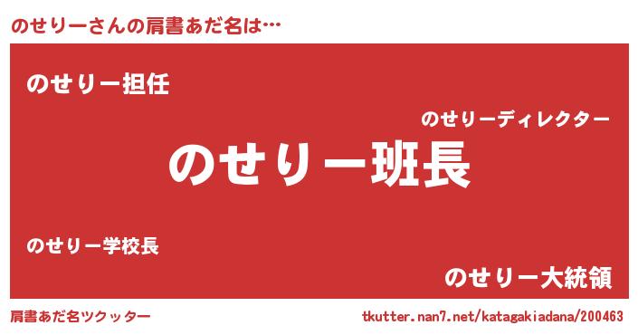 | ピコ太郎風あだ名 | 『ノセ二郎』『ピコノ郎』『ピノ史郎』 |