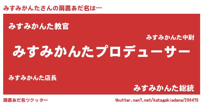 | 意味不明あだ名 | 『住所不定無職みすみかんた(79歳)』 |