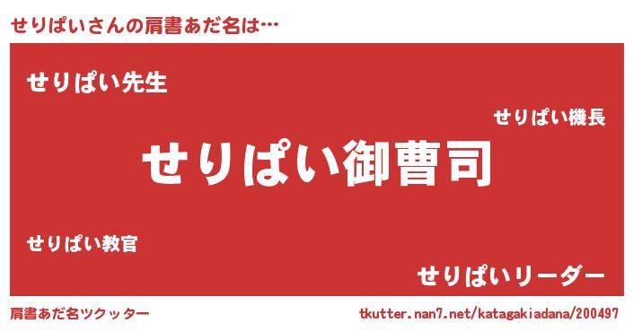 | 胡散臭い通販商品みたいなあだ名 | 『モテモテ間違いなし霊験あらたかなお札…その名も「せりぱい」』 |