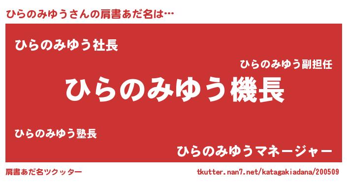 | ヘコむあだ名 | 『ひらっふぃ~』『ひらのみゆう(笑)』 |