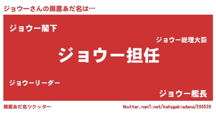 | ヘコむあだ名 | 『ジョウー(震え声)』『酢こんぶ』 |