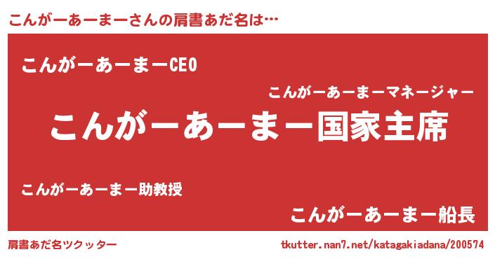 | 欧米人風あだ名 | 『こんがーあーまークリステル』 |