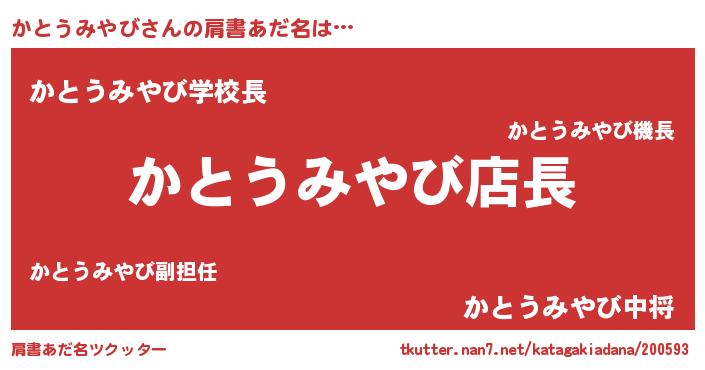| ヘコむあだ名 | 『かとにゅー』『かとうみやび(爆)』 |