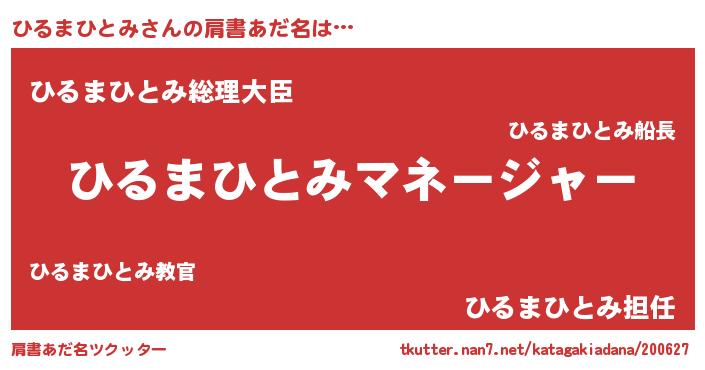 | 男性向けラノベタイトル風あだ名 | 『はたらくひるまひとみさま!』 |