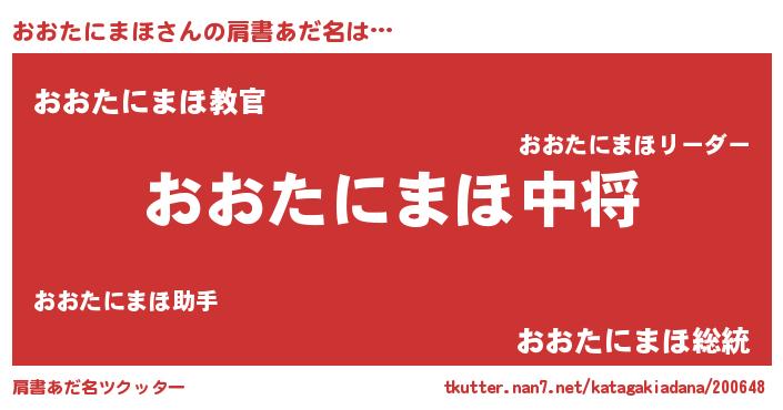 | 男性向けラノベタイトル風あだ名 | 『転生したらおおたにまほだった件』 |