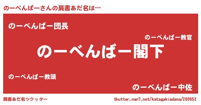 | 意味不明あだ名 | 『自称のーべんばー』 |