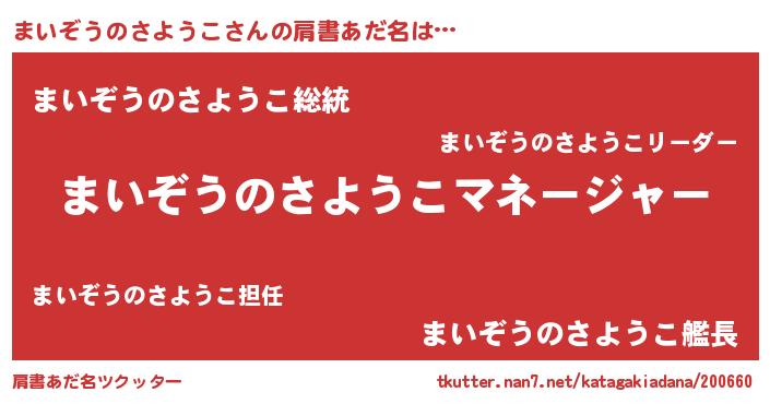 | 意味不明あだ名 | 『自称まいぞうのさようこ』 |