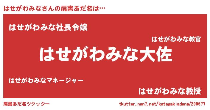 | 胡散臭い通販商品みたいなあだ名 | 『モテモテ間違いなしブレスレット…その名も「はせがわみな」』 |