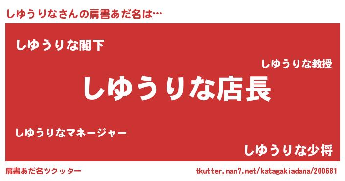 | ヒーロー風カッコイイあだ名 | 『スーパーシユウリナ』『仮面シユダー』 |