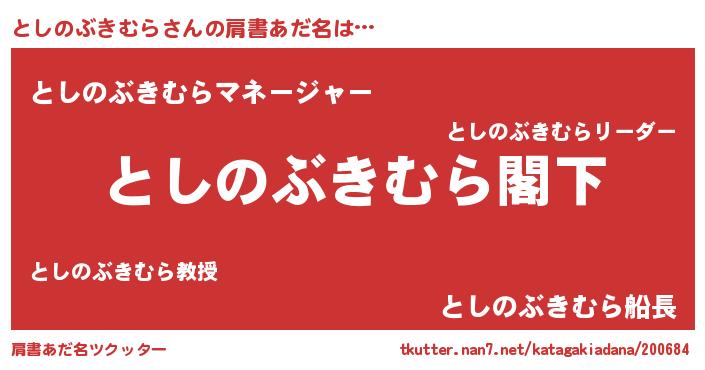 | 女子向けラノベタイトル風あだ名 | 『闇のとしのぶきむら』 |