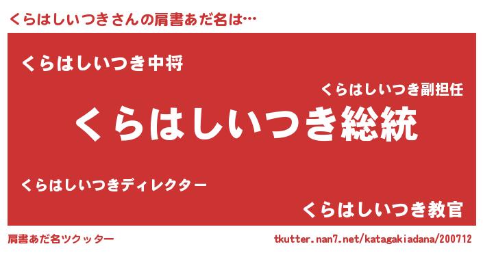 | 女子向けラノベタイトル風あだ名 | 『くらはしいつきなんてお断りですっ。』 |