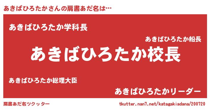 | 意味不明あだ名 | 『永久保存あきばひろたか』 |