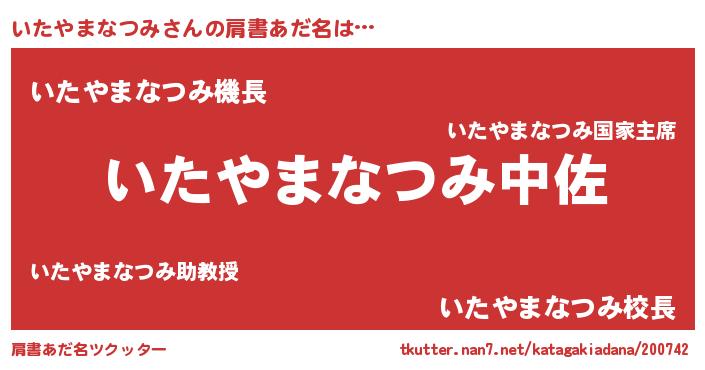 | 胡散臭い通販商品みたいなあだ名 | 『来世でも幸せになれる招き猫…その名も「いたやまなつみ」』 |