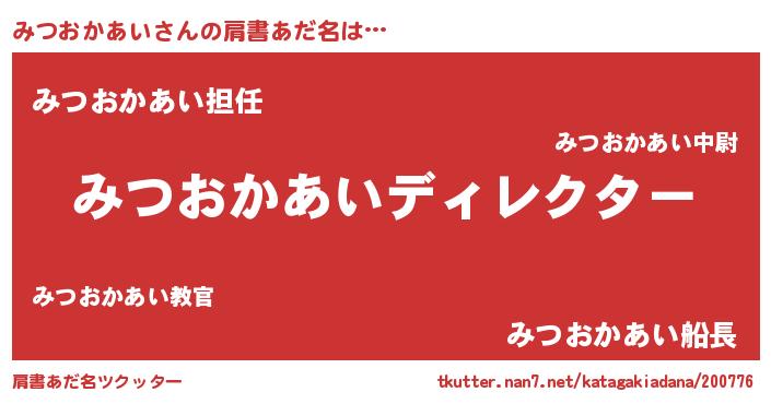 | 意味不明あだ名 | 『永久保存みつおかあい』 |