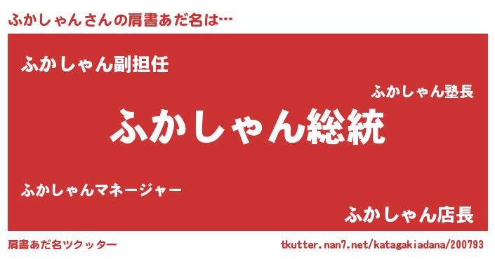 | 意味不明あだ名 | 『自称ふかしゃん』『永久保存ふかしゃん』 |