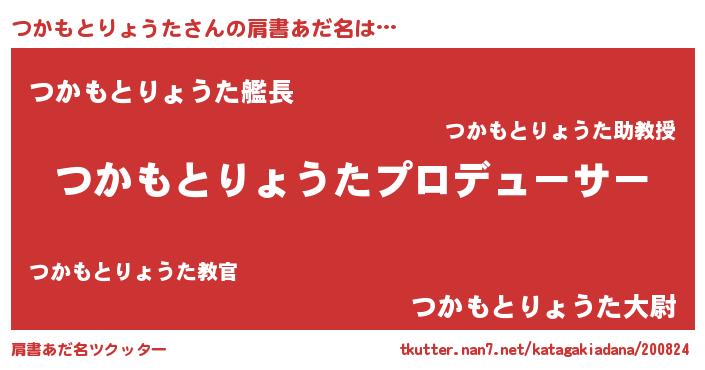 | 男性向けラノベタイトル風あだ名 | 『つかもとりょうたに滅ぼされるだけの簡単なお仕事です』 |