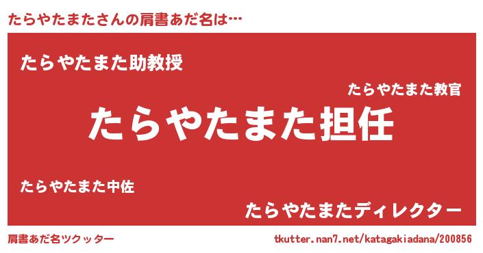 | 男性向けラノベタイトル風あだ名 | 『たらやたまたという概念が存在しない退屈な世界 』 |