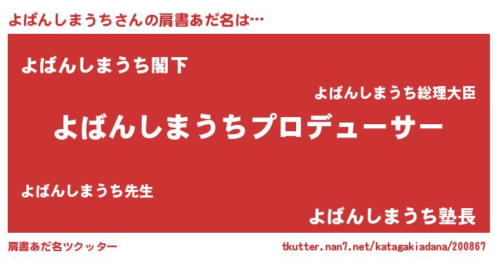 | 意味不明あだ名 | 『自称よばんしまうち』 |