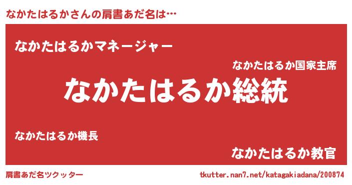 | 男性向けラノベタイトル風あだ名 | 『Re:なかたはるかから始める異世界生活』 |