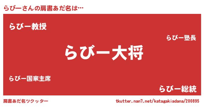 | ポケモン風あだ名 | 『ラビキング』『ラックウザ』 |