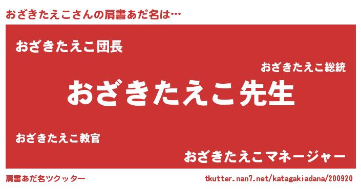 | ヘコむあだ名 | 『おざきたえこ(笑)』『おざお』 |