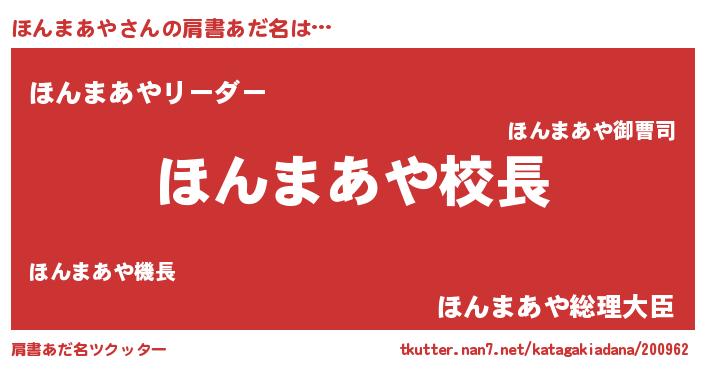 | 胡散臭い通販商品みたいなあだ名 | 『絶対に幸福をもたらす健康食品…その名も「ほんまあや」』 |