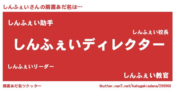 | ヘコむあだ名 | 『しんふぇい(苦笑)』『しん太郎』 |