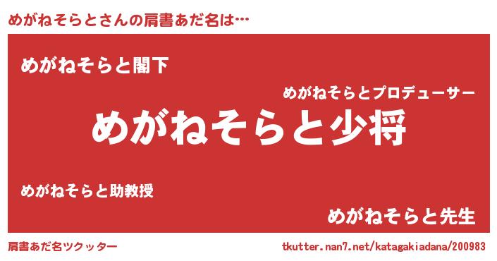 | 欧米人風あだ名 | 『トリンドルめがねそらと』 |