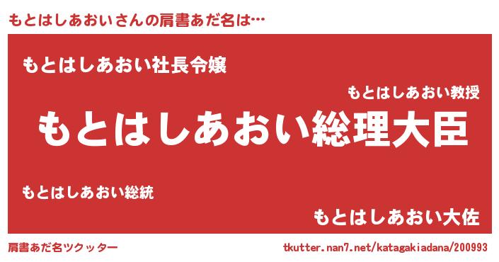 | 意味不明あだ名 | 『もとはしあおいフォーエバー』 |