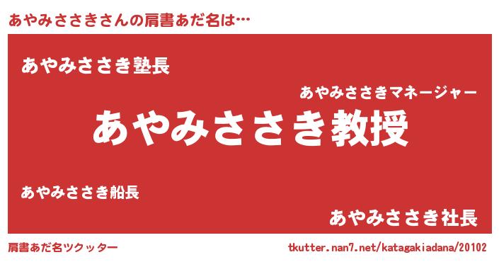 | 女子向けラノベタイトル風あだ名 | 『あやみささき恋絵巻』 |