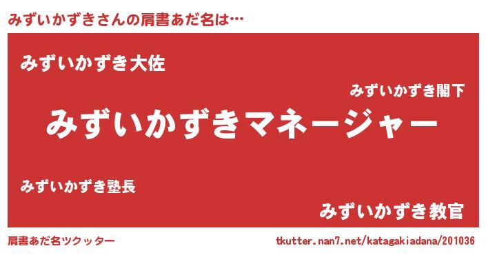 | 男性向けラノベタイトル風あだ名 | 『みずいかずきに滅ぼされるだけの簡単なお仕事です』 |