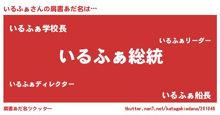 | 意味不明あだ名 | 『自称いるふぁ』『永久保存いるふぁ』 |