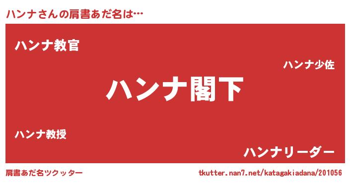 | 欧米人風あだ名 | 『ケンブリッジハンナ』『ウサインハンナ』 |