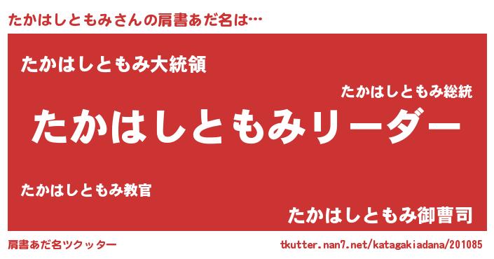 | 意味不明あだ名 | 『とにかく怪しいたかはしともみ』 |