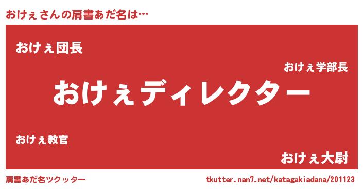 | 女子向けラノベタイトル風あだ名 | 『横柄おけぇと宰相陛下』『おけぇ恋絵巻』 |