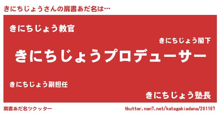 | ヘコむあだ名 | 『きにっぺ』『きにちじょう(遠い目)』 |