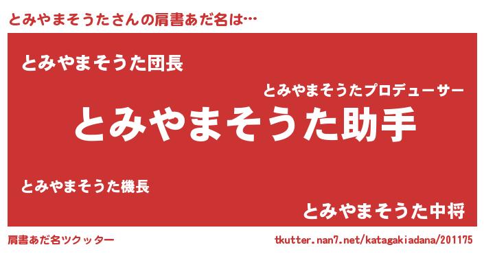 | 胡散臭い通販商品みたいなあだ名 | 『100人中100人が認めたイリジウム磁石…その名も「とみやまそうた」』 |