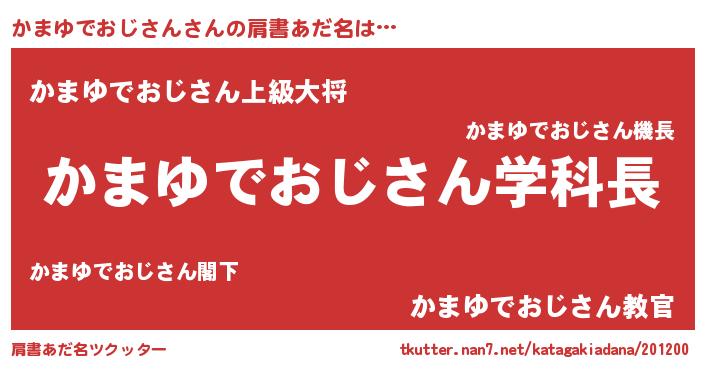 | ピコ太郎風あだ名 | 『カカ太郎』『ピコカ郎』『カマ十郎』 |