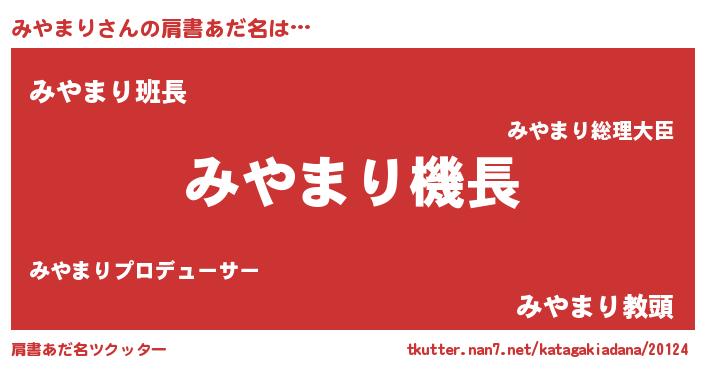 | 意味不明あだ名 | 『とにかく怪しいみやまり』 |