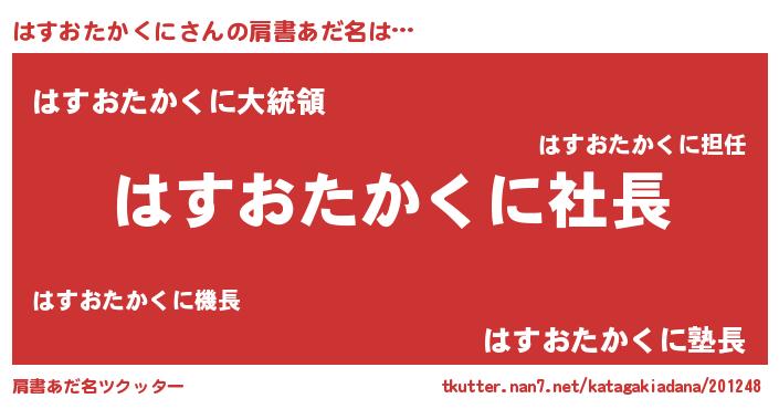 | 胡散臭い通販商品みたいなあだ名 | 『億万長者になれるブレスレット…その名も「はすおたかくに」』 |