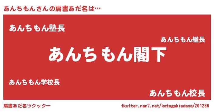 | 意味不明あだ名 | 『自称あんちもん』『永久保存あんちもん』 |