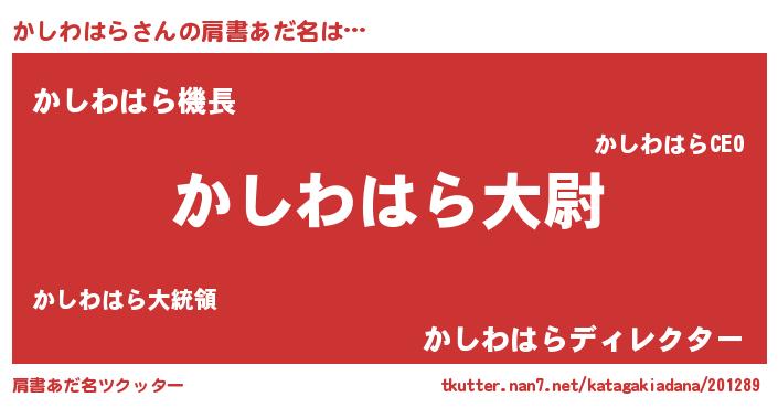 | ヒーロー風カッコイイあだ名 | 『スーパーカシワハラ』『仮面カシダー』 |