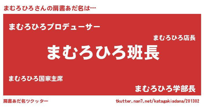 | 意味不明あだ名 | 『とにかく怪しいまむろひろ』 |