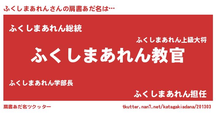 | ヘコむあだ名 | 『ふくしまあれん(震え声)』『ふくもー』 |