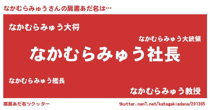 | ヒーロー風カッコイイあだ名 | 『スーパーナカムラミュウ』 |