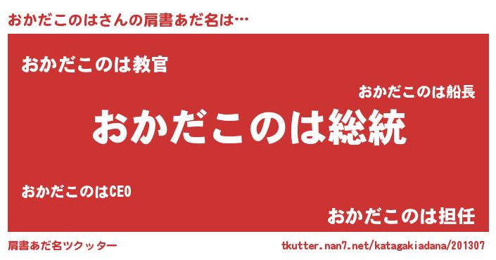 | ピコ太郎風あだ名 | 『ピコオ郎』『オコ史郎』『オカ六郎』 |