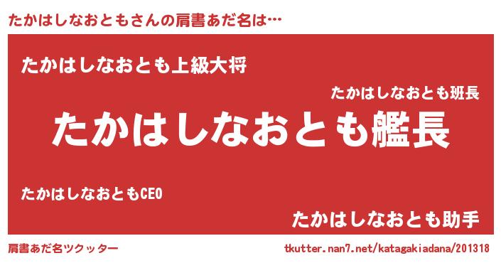 | 欧米人風あだ名 | 『たかはしなおとも・ステッグマイヤー』 |